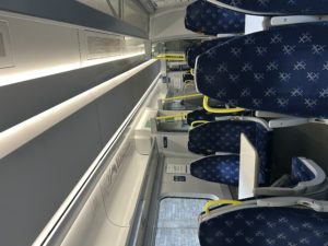 電車の乗り方はすでに多くの方が書いている通り、今はスマホのアプリで買って、QRコードで大丈夫です。本当に簡単な話で、券売機でチケットを買っている人もまだ見かけましたが、ここはスマホ一択です。WaverleyからQueen Streetまで、エクスプレスであれば50分弱、席は自由席、特に困ることはないです。駅のディスプレイに1時間から30分ぐらい前には発車プラットフォームが表示され、これもアプリ上で見ることができます。で、入って待つ。。。ちょっと心配なので早めに入りすぎましたが、15分ぐらい前に電車が来て、特に混雑なく座れました。